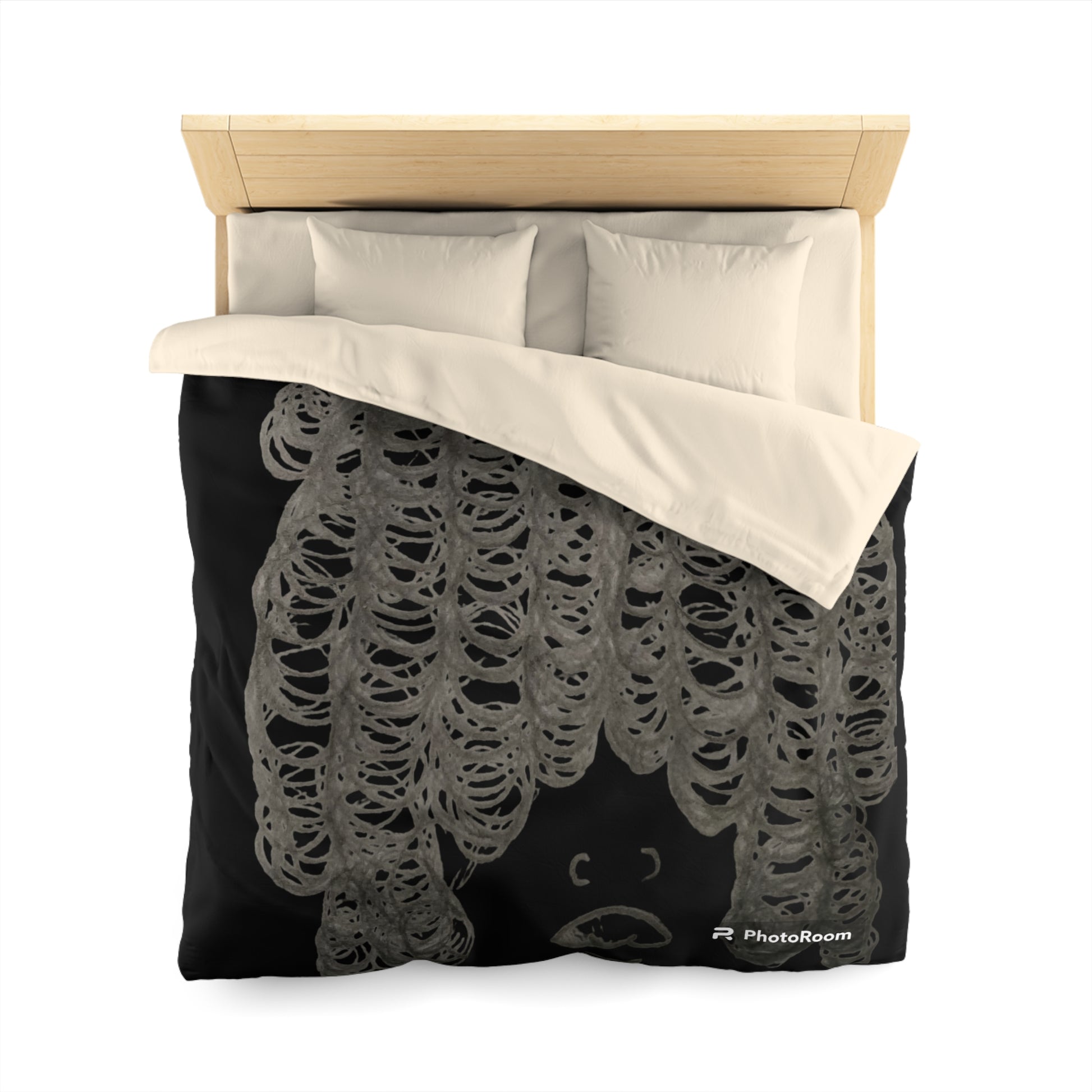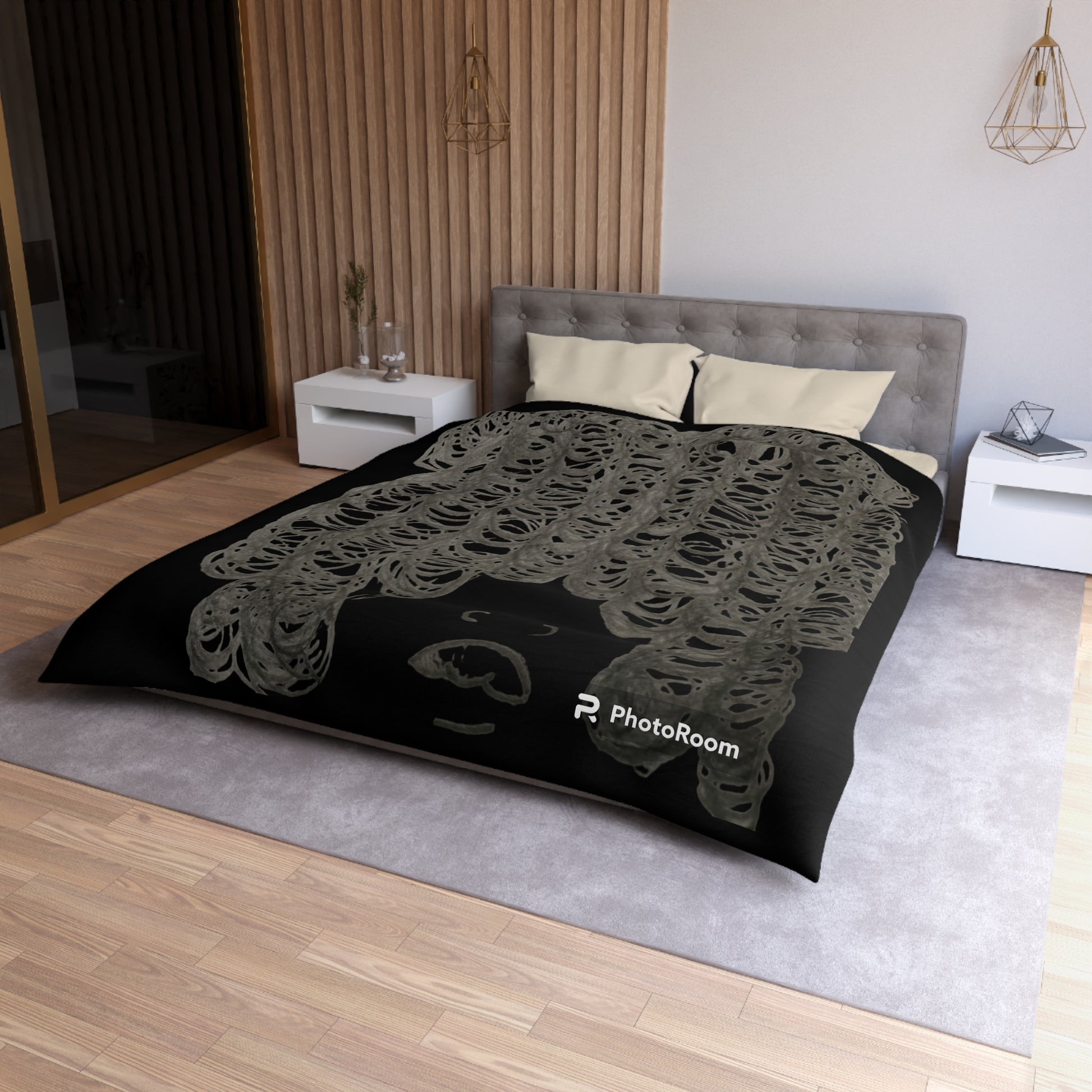 Duvet Cover — Hand-Drawn Curly Hair Portrait on Black