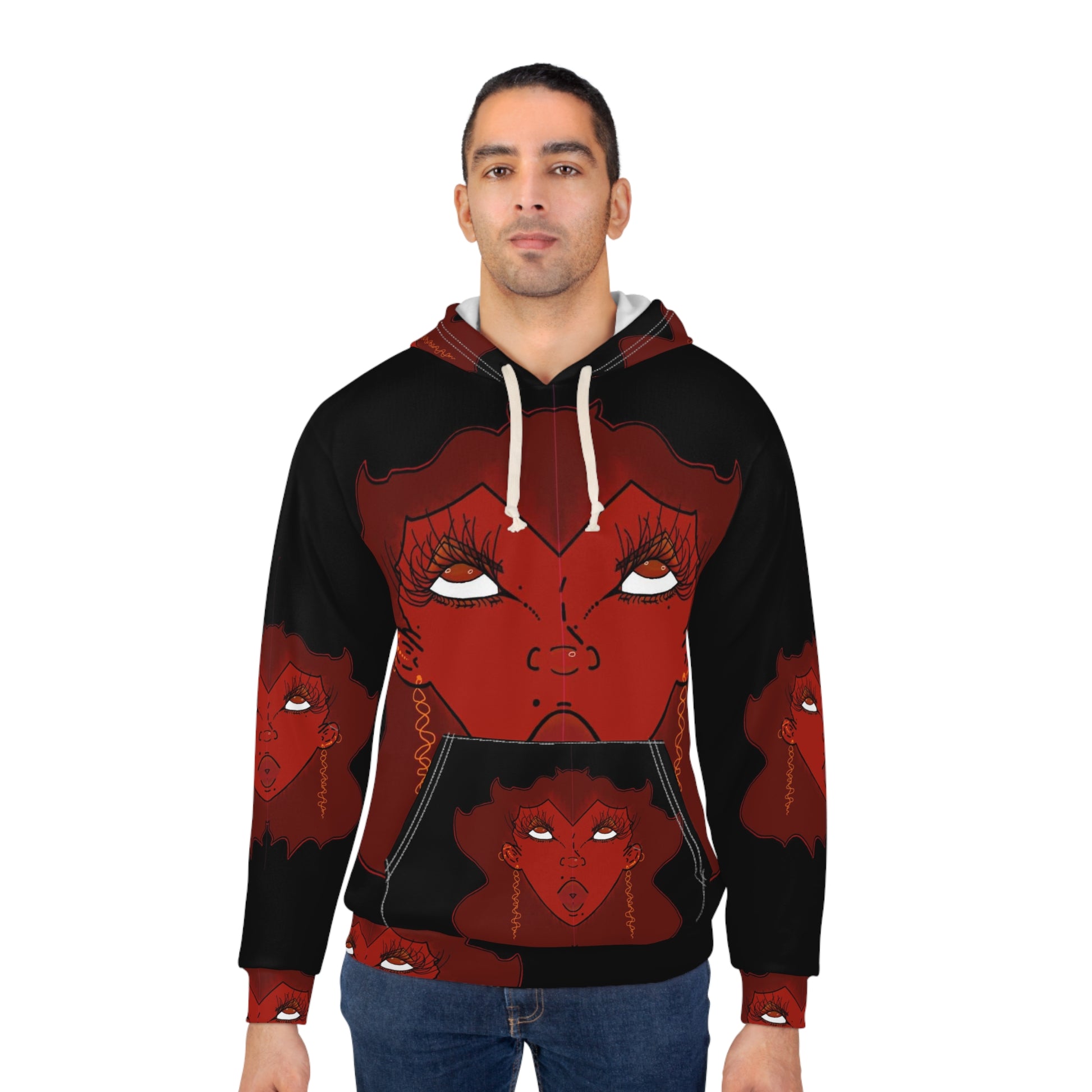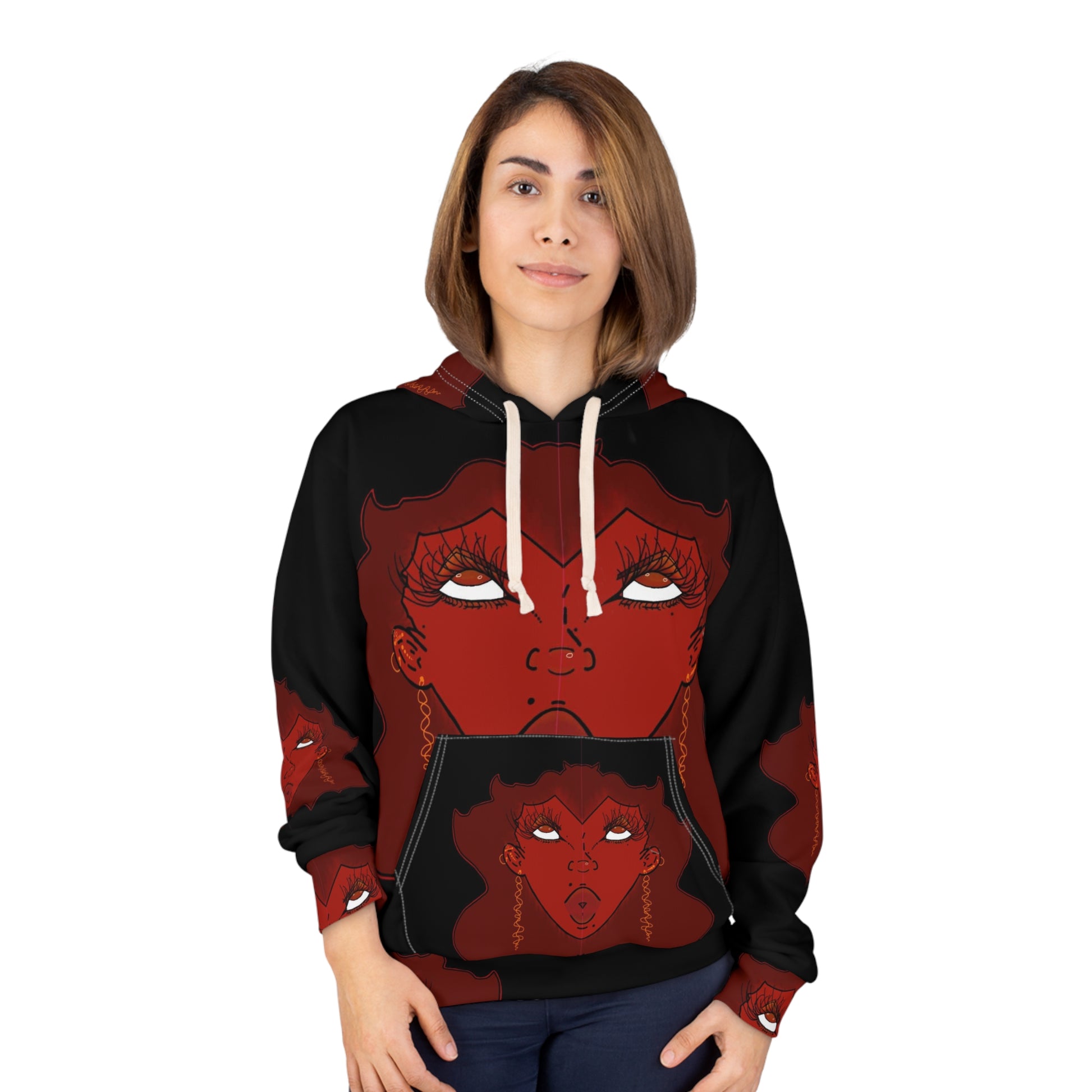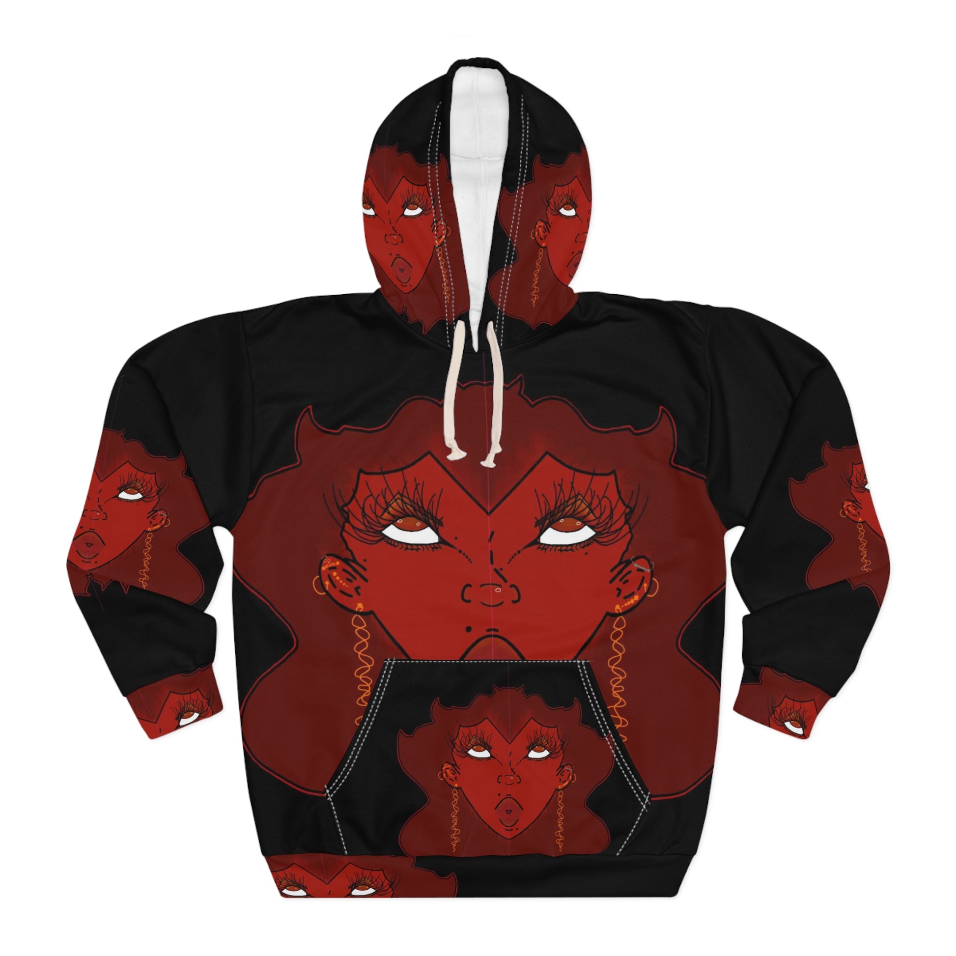 This Pullover Hoodie is made for warmth and comfort. Made to be easily customizable without white lines at the seams, this all-over print pullover hoodie is waiting for you to add a great design and it instantly becomes fashionable. It features a large front pocket, a hood with a drawstring, and is custom cut and sewn.